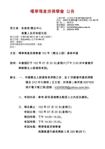 (2)待國際佛教僧尼總會公佈報名方式後,若允許道場統一報名及恭請佛典,本會會協助彙總名冊報名。